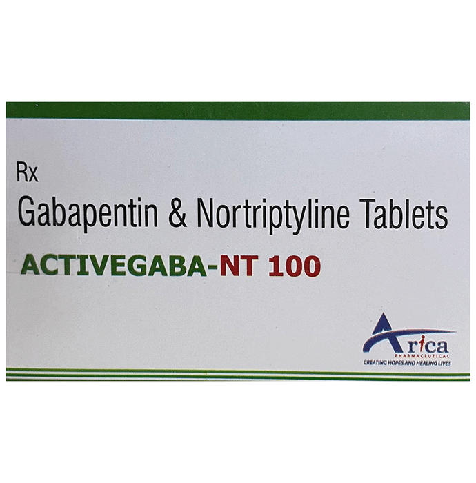 What is Activegaba-NT 100 Tablet?::: Activegaba-NT 100 Tablet is a combination of two medicines: Gabapentin and Nortriptyline. This medicine is useful in the treatment of nerve pain (Neuropathic pain). It calms the damaged or overactive nerves by acting on the brain. Thereby, it decreases the pain sensation.| Can I stop taking Activegaba-NT 100 Tablet when my pain is relieved?::: No, you should not stop taking Activegaba-NT 100 Tablet even if your pain is relieved. Continue to take it as advised by your doctor. If you suddenly stop taking Activegaba-NT 100 Tablet, you may experience withdrawal symptoms such as anxiety, sleeping difficulties, nausea, pain and sweating. You may need to gradually taper the dose before you stop the medication completely.| How to manage weight gain associated with the use of Activegaba-NT 100 Tablet?::: Activegaba-NT 100 Tablet can make you feel hungry which might make you eat more, thereby increasing your chances of putting on weight. However, preventing weight gain is easier than losing the increased weight. Try to eat a healthy balanced diet without increasing your portion sizes (per-meal intake). Do not eat food items that contain a lot of calories, such as soft drinks, oily food, chips, cakes, biscuits, and sweets. If you feel hungry between meals avoid eating junk food and eat fruits, vegetables and low-calorie foods. Regular exercise will help prevent weight gain. If you maintain good eating habits and exercise regularly, you might not gain any weight.| Can the use of Activegaba-NT 100 Tablet affect my sexual life?::: The use of Activegaba-NT 100 Tablet can affect the sexual life of both men and women. Most commonly observed problems are decreased sexual desire, erectile dysfunction (inability to develop or maintain erection during the sexual activity) and inability to reach orgasm. It can also cause a decrease in satisfaction and cause discomfort while intercourse. If you experience these problems, discuss them with your doctor but do not stop taking Activegaba-NT 100 Tablet.| Are there any serious side effects associated with the use of Activegaba-NT 100 Tablet?::: Serious side effects because of Activegaba-NT 100 Tablet are uncommon and rare. Consult your doctor immediately if you notice any of the following: changes in body temperature, difficulty in breathing, increased heartbeat (palpitations), weakness, unsteadiness when walking, reduced coordination or slowed reactions, unusual changes in mood or behavior (such as restlessness, nervousness or excitement), signs of depression, seeing or hearing things that are not there, irrational thinking, blurred or double vision, uncontrollable jerky eye movements, difficulty seeing, signs of frequent infections such as fever, severe chills, sore throat or mouth ulcers. These side effects are uncommon but may be serious and need urgent medical attention.| How long will the Activegaba-NT 100 Tablet take to act?::: An initial benefit with Activegaba-NT 100 Tablet may be seen after 2 weeks of treatment. However, it may take around 2-3 months to see full benefit. It may even take longer in some patients.| What if I forget to take Activegaba-NT 100 Tablet?::: If you forget to take the scheduled dose of Activegaba-NT 100 Tablet and it is almost time for your next dose, skip the dose you missed and take your next dose at the scheduled time. Otherwise, take it as soon as you remember, and then go back to taking your medicine as you would normally. Do not take a double dose to make up for the dose you missed because this may increase the risk of unwanted side effect due to overdosage. If you are not sure what to do, ask your doctor about taking Activegaba-NT 100 Tablet.| What if I take too much of this drug by mistake?::: In a situation like this, contact your doctor immediately or seek emergency help at the nearest hospital. Do this even if there are no signs of discomfort or poisoning. You may need urgent medical attention. Overdose of this medicine may make you feel drowsy, weak, unsteady when walking, have double visions, slurred speech or diarrhea, confusion, blurred vision, dizziness, body temperature changes (low and high), difficulty in breathing and increased heartbeat.| Is there anything I need to avoid while taking Activegaba-NT 100 Tablet?::: Activegaba-NT 100 Tablet may impair your thinking or reactions. Be careful while driving or while doing any activity that requires you to be alert. Do not drink alcohol while you are taking Activegaba-NT 100 Tablet. It can increase the effects of alcohol which could be dangerous. Grapefruit and grapefruit juice may also interact with this medicine and cause unwanted side effects. Avoid exposure to sunlight or tanning beds. Use of Activegaba-NT 100 Tablet can make you more prone to sunburns. Wear protective clothing and use sunscreen when you are outdoors during daytime.| How often should I see the doctor?::: You may need to see your doctor regularly if you have started to take Activegaba-NT 100 Tablet. However, you must consult your doctor if the advised dosage of Activegaba-NT 100 Tablet does not improve your symptoms or you continue experiencing unwanted side effects that affect your routine activities.| Can the use of Activegaba-NT 100 Tablet cause sleepiness or drowsiness?::: Yes, Activegaba-NT 100 Tablet may make you feel drowsy or may cause you to suddenly fall asleep during your daily activities. You might not even feel drowsy or have any other warning signs before you suddenly fall asleep. Avoid driving a car, operating machinery, working at heights or participating in potentially dangerous activities at the beginning of your treatment until you know how the medication affects you. Inform your doctor if you experience such episodes while you are taking this medicine.| Will Activegaba-NT 100 Tablet be more effective if taken more than recommended dose?::: No, taking a higher than the recommended dose may not be more effective, rather it may increase the chance