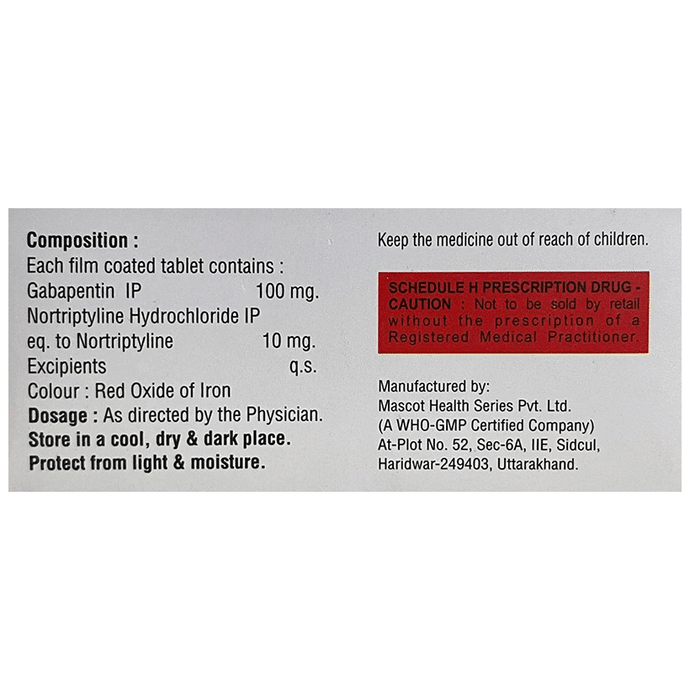 Gabapentin (100mg) + Nortriptyline (10mg):<packagingdetail>:Strip: