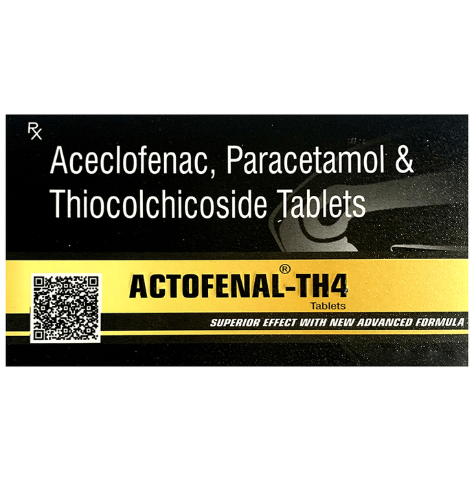 Actofenal-TH4 Tablet is a combination medicine that helps in relieving muscular pain. It works by blocking the release of certain chemical messengers that cause pain, inflammation, and fever. This improves the movement of muscles and provides relief from pain and discomfort. Actofenal-TH4 Tablet should be taken with food. This will prevent you from getting an upset stomach. The dose and duration will depend on the severity of your condition. You should keep taking the medicine even if you feel better until the doctor says it is alright to stop using it.Using this medicine may cause few common side effects such as nausea, vomiting, heartburn, stomach pain, diarrhea, loss of appetite, and dryness in the mouth. If any of these side effects do not resolve with time or get worse, you should let your doctor know. Your doctor may be able to suggest ways of preventing or reducing the side effects. In general, you should try to use the smallest amount necessary to control your symptoms.Before using the medicine, you should tell your doctor if you have any other medical conditions or disorders. To make sure it is safe, you should let your doctor know all the other medicines you are taking. Also, tell your doctor if you have any problems with your liver or kidneys. You should avoid the consumption of alcohol while on treatment with this medicine. Pregnant and breastfeeding women should consult their doctors first before using the medicine.