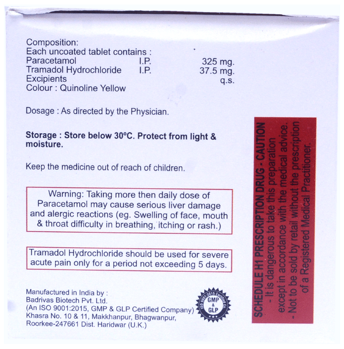 Tramadol (37.5mg) + Paracetamol (325mg):<packagingdetail>:Strip: