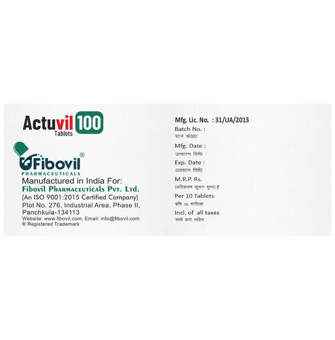 In Treatment of Functional dyspepsia Functional dyspepsia is another term for indigestion that is not associated with a specific cause. It may cause symptoms such as an early feeling of fullness after eating, stomach pain or discomfort, nausea, and bloating. Actuvil 100 Tablet helps treat these symptoms by increasing the rate of stomach emptying. Take it exactly as it is prescribed. Some simple lifestyle changes can help stop or reduce these symptoms. Think about what foods trigger your symptoms and try to avoid them; eat smaller, more frequent meals; try to lose weight if you are overweight, and try to find ways to relax. Do not eat within 3 to 4 hours of going to bed.