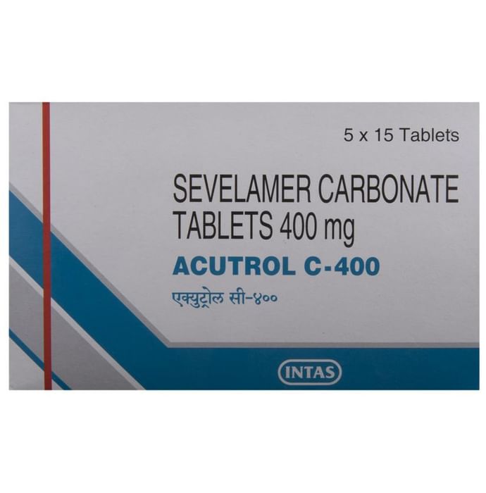Acutrol C 400 Tablet is used to treat increased phosphate levels in the blood. It is used in patients who are on dialysis due to severe kidney disease. It inhibits the absorption of phosphate from the intestine and lowers the phosphate levels in the blood. Acutrol C 400 Tablet should be taken with food. Take it in the dose and duration as advised by your doctor. Take it regularly and at a fixed time each day to get the maximum benefit of the medicine.Acutrol C 400 Tablet may cause side effects such as nausea, vomiting, abdominal pain, constipation, and diarrhea. You may also develop low levels of calcium, folic acid, and vitamins A, D, E, and K in your blood. Take necessary supplements as advised by your doctor.