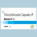 What is Adact 8 Capsule?::: Adact 8 Capsule is a muscle relaxant which is used in adults and adolescents from 16 years onwards as an add-on treatment for painful muscular contractions. It is to be used for acute conditions related to the spinal column.| Is Adact 8 Capsule a steroid?::: No, Adact 8 Capsule is not a steroid. It is a naturally occurring glucoside from a plant source. | Adact 8 Capsule is derived from which plant?::: Adact 8 Capsule is a semi-synthetic derivative of naturally occurring compound colchicoside from the plant Gloriosa superb.| Is Adact 8 Capsule safe?::: Adact 8 Capsule is a safe medicine if used at prescribed doses for the prescribed duration as advised by your doctor. Recently, there have been reports that one of the products formed in the body when taking Adact 8 Capsule at high doses may cause damage to the some cells which could be a risk factor for cancer, harm to unborn child and impairment of male fertility. Please consult your doctor before taking this medicine.| How does Adact 8 Capsule works?::: Thiocochicoside works by acting on the centres in the brain and spinal cord to relieve the muscle stiffness or spasm. | Is Adact 8 Capsule addictive?::: No, Adact 8 Capsule is not known to have any addiction potential.: