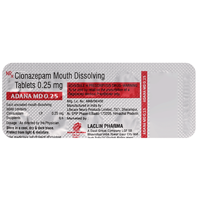Clonazepam (0.25mg):<packagingdetail>:Strip: