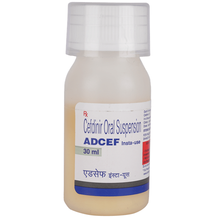 Can Adcef Insta Use Syrup be given to children who are less than 5 months of age?::: No. Safety and efficacy data in neonates and infants less than 6 months of age have not yet been established, so avoid giving it to kids younger than 6 months of age.| Can giving oral nutrition supplements (infant formula) interfere with the absorption of Adcef Insta Use Syrup?::: Infant formula does not cause any significant interference with the absorption of Adcef Insta Use Syrup. Therefore, this medicine can be given with oral nutrition supplements (infant formula or baby milk).| What will happen if I give an excess of Adcef Insta Use Syrup to my child?::: Even though an extra dose of Adcef Insta Use Syrup is unlikely to harm. However, if you think you have given too much of Adcef Insta Use Syrup to your child, immediately speak to a doctor.| Can Adcef Insta Use Syrup cause serious side effects in my child?::: Some serious side effects of this medicine include persistent vomiting, kidney damage, allergy, diarrhea, severe gastrointestinal infections, blood cell count abnormalities, impaired glucose in blood, and electrolyte abnormalities. Always consult your child’s doctor for help in such a situation.| My child has type 1 diabetes and is on insulin therapy. Is it safe to give Adcef Insta Use Syrup to my child?::: No, Adcef Insta Use Syrup can cause disturbed glucose levels in the blood. Therefore, it is not advised to give Adcef Insta Use Syrup if your child is diabetic.| Can other medicines be given at the same time as Adcef Insta Use Syrup?::: Adcef Insta Use Syrup can sometimes interact with other medicines or substances. Tell your doctor about any other medicines your child is taking before starting Adcef Insta Use Syrup. Also, check with your child’s doctor before giving any medicine to your child.| My child is suffering from anemia and is on oral iron therapy. Is it safe to give Adcef Insta Use Syrup along with it?::: It is not advised to give Adcef Insta Use Syrup with oral iron therapy as it binds to iron preparation in your child’s digestive system and can result in reddish stools.| Can I get my child vaccinated while on treatment with Adcef Insta Use Syrup ?::: Antibiotics usually do not interfere with the ingredients in vaccines or cause a bad reaction in a child who has just been vaccinated. However, children taking antibiotics should not get vaccinated until they recover from the illness. As soon as your child feels better, the vaccine can be given.| What laboratory tests will the doctor ask for while my child is taking Adcef Insta Use Syrup on a long term basis?::: The doctor may prescribe getting kidney function tests and liver function tests periodically to keep a check on your child’s condition.| The mucus coming out of my child’s nose is yellow-green. Is it a sign of a bacterial infection?::: The color of the mucus cannot be used to understand whether your child needs antibiotics or not. It is normal for the mucus to change color during a common cold infection.| Can Adcef Insta Use Syrup affect my child’s digestive system?::: Diarrhea is a common side effect of antibiotics because apart from killing the bad bacteria, antibiotics may unintentionally kill the good ones too. On top of that, children often have a sensitive stomach which increases the risk of developing other infections. In case your child is having diarrhea while on Adcef Insta Use Syrup, do not stop the medicine course. Instead, call your child’s doctor to ask about the next steps. In some cases, the doctor may alter the dose.:
