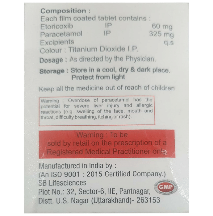 Etoricoxib (60mg) + Paracetamol (500mg):<packagingdetail>:Strip: