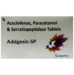 What is Addgesic-SP Tablet?::: It is a combination of three medicines: Aceclofenac, Paracetamol, and Serratiopeptidase. This medication helps in relieving pain and inflammation. It works by lowering the levels of chemical substances in the body that cause pain and inflammation.| Is it safe to take Addgesic-SP Tablet?::: It is safe to take this medicine for most of the patients. However, in some patients, it may cause unwanted side effects like nausea, vomiting, stomach pain, heartburn, and diarrhea. If you experience any persistent problem due to the medication, inform your doctor as soon as possible.| Can I stop taking Addgesic-SP Tablet when my pain is relieved?::: This medicine is usually used for the short term and can be discontinued when your pain is relieved. However, continued taking it if your doctor has advised you to do so.| Can Addgesic-SP Tablet cause nausea and vomiting?::: Yes, the use of this medicine can cause nausea and vomiting. In case you experience nausea while taking this medicine, take it with milk, food, or with antacids. Avoid taking fatty or fried foods along with this medication. In case of vomiting, drink plenty of water or other fluids by taking small frequent sips. Talk to your doctor if vomiting persists and you notice signs of dehydration, like dark colored and strong-smelling urine and a low frequency of urination. Do not take any other medicines without speaking to your doctor.| Can Addgesic-SP Tablet cause dizziness?::: Yes, the use of this medicine can cause dizziness (feeling faint, weak, unsteady or lightheaded) in some patients. If you feel dizzy or lightheaded, it is better to rest for sometime and resume once you feel better.| Are there any specific contraindications associated with taking Addgesic-SP Tablet?::: The use of this medicine is considered harmful for patients with known allergy to any of the components or excipients of this medicine or in patients with known allergy to other painkillers (NSAIDs). Its use should preferably be avoided in patients with a history of stomach ulcers or in patients with active, recurrent stomach ulcers/bleeding. It should also be avoided in patients with a history of heart failure, high blood pressure, and liver or kidney disease.| Can I take Addgesic-SP Tablet with vitamin B-complex?::: Yes, this medicine can be taken with vitamin B-complex preparations. While it helps to relieve pain, vitamin B-complex can help to correct the vitamin deficiency that might be causing your symptoms.| Can the use of Addgesic-SP Tablet cause damage to kidneys?::: Yes, long-term use of this medicine can cause damage to the kidneys. Normal kidneys produce a chemical called prostaglandins that protect them from damage. The use of painkillers lowers the levels of prostaglandins in the body, which leads to kidney damage on long-term use. The use of painkillers is not recommended in patients with underlying kidney disease.| Can I take a higher dose of Addgesic-SP Tablet than recommended?::: No, taking a higher than recommended dose can lead to increased chances of side effects. If you are experiencing increased severity of pain or the pain is not relieved by the recommended doses, please consult your doctor for re-evaluation.| What are the instructions for storage and disposal of Addgesic-SP Tablet?::: Keep this medicine in the packet or the container it came in, tightly closed. Store it according to the instructions mentioned on the pack or label. Dispose of the unused medicine. Make sure it is not consumed by pets, children and other people.: