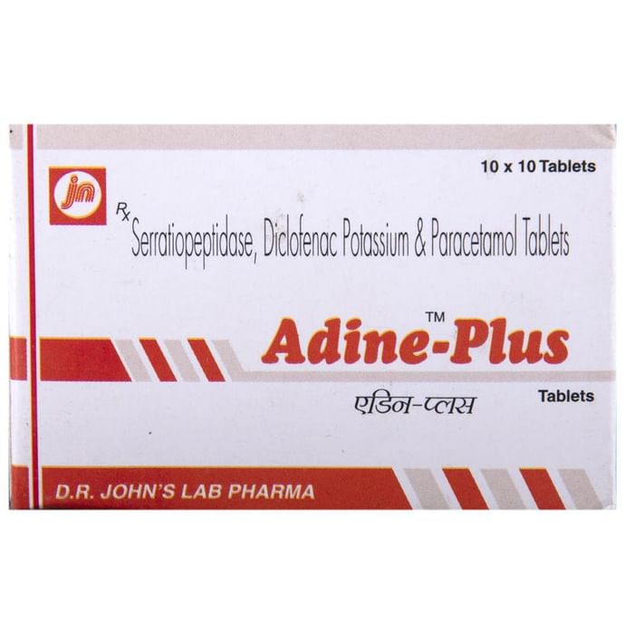 What are the storage condition for Adine-Plus Tablet?::: Keep this medicine in the container or the pack it came in, tightly closed. Store it as mentioned on the pack or label. Dispose of the unused medicine. Make sure it is not consumed by pets, children and other people.| What is Adine-Plus Tablet?::: Adine-Plus Tablet is a combination of three medicines: Diclofenac, Paracetamol, and Serratiopeptidase. This medication helps in relieving pain and inflammation. It works by lowering the levels of chemical substances in the body that causes pain and inflammation.| Is it safe to use Adine-Plus Tablet?::: Yes, Adine-Plus Tablet is safe for most of the patients, however, in some patients it may cause common unwanted side effects like nausea, vomiting, stomach pain, heartburn and diarrhea. Inform your doctor as soon as possible if you experience any persistent problem due to the medication.| Can I stop taking Adine-Plus Tablet when my pain is relieved?::: Adine-Plus Tablet is usually used for a short term and can be discontinued when the pain is relieved. However, Adine-Plus Tablet should be continued if you are advised by your physician to do so.| Can the use of Adine-Plus Tablet cause nausea and vomiting?::: Yes, the use of Adine-Plus Tablet can cause nausea and vomiting.Taking it with milk, food or with antacids can prevent nausea. Avoid taking fatty or fried foods along with this medication. In case of vomiting, drink plenty of water or other fluids by taking small frequent sips. Talk to your doctor if vomiting persists and you notice signs of dehydration, like dark colored and strong-smelling urine and a low frequency of urination. Do not take any other medicine without speaking to your doctor.| Can the use of Adine-Plus Tablet cause dizziness?::: Yes, the use of $ame can cause dizziness (feeling faint, weak, unsteady or lightheaded) in some patients. If you feel dizzy or lightheaded, it is better to rest for sometime and resume once you feel better. Do not drive or use any machines.| Are there any specific contraindications associated with the use of Adine-Plus Tablet?::: The use of Adine-Plus Tablet is considered to be harmful for patients with known allergy to any of the components or excipients of this medicine or in patients with known allergy to other painkillers (NSAIDs). The use of this medicine should preferably be avoided in patients with a history of stomach ulcers or in patients with active, recurrent stomach ulcer/bleeding. It should also be avoided in patients with a history of heart failure, high blood pressure, and liver or kidney disease.| Can I take Adine-Plus Tablet with Vitamin B-complex?::: Adine-Plus Tablet can be taken with Vitamin B-complex preparations. While Adine-Plus Tablet helps to relieve pain, Vitamin B-complex can help to correct the vitamin deficiency that might be causing your symptoms.| Can I take Adine-Plus Tablet for stomach pain?::: No, Adine-Plus Tablet preferably should not be taken for stomach pain without consulting a physician. This drug can increase stomach acid secretion which may aggravate an unknown underlying condition.| Can the use of Adine-Plus Tablet cause damage to kidneys?::: No, taking higher than the recommended dose of Adine-Plus Tablet can lead to increased chances of side effects. If you are experiencing increased severity of pain or if the pain is not relieved by the recommended doses, please consult your doctor for re-evaluation.: