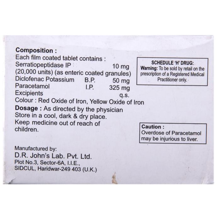 Diclofenac (50mg) + Paracetamol (325mg) + Serratiopeptidase (10mg):<packagingdetail>:Strip: