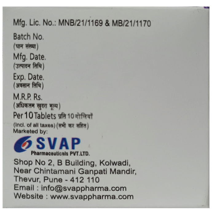 Prescription Required:Svap Pharmaceutical Pvt Ltd:<medicine_type>: