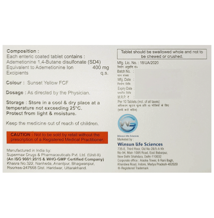 Ademetionine (400mg):<packagingdetail>:Strip: