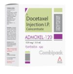 Q. Does Admoxel 120 Combipack Injection cause weight gain?::: Yes, Admoxel 120 Combipack Injection may cause weight gain. It may occur due to fluid retention which may initially make your feet swell and then gradually it will spread to the whole body. Call your doctor immediately if you notice swelling of feet.| Q. How long do I have to take Admoxel 120 Combipack Injection?::: You should continue to take Admoxel 120 Combipack Injection as long as your doctor advises you. The duration of treatment varies with the type of cancer you have and other factors like your response to treatment. You should usually receive your infusion once every 3 weeks.| Q. Can I drink alcohol while on Admoxel 120 Combipack Injection?::: Admoxel 120 Combipack Injection injection contains alcohol because of which you may experience confusion, stumbling, becoming very sleepy, or feeling like you are drunk. This may impair your ability to drive or use machinery right after receiving it. Hence, you should avoid alcohol during Admoxel 120 Combipack Injection therapy, as it may affect you adversely.| Q. What is Admoxel 120 Combipack Injection used for?::: Admoxel 120 Combipack Injection is commonly used for breast cancer, certain types of lung cancer, prostate, stomach, and head and neck cancers. It works by restricting cells from growing and multiplying.| Q. Is Admoxel 120 Combipack Injection available in pill form?::: No, Admoxel 120 Combipack Injection injection comes as a liquid to be given intravenously (into a vein) by a doctor or nurse in a hospital or clinic. It is usually given over 1 hour once every 3 weeks.| Q. What blood tests are required before administration of Admoxel 120 Combipack Injection?::: Your doctor will ask you to get blood tests every time you have a scheduled dose of Admoxel 120 Combipack Injection. You may be asked to have blood tests, such as hemogram and liver function tests, to ensure that you have enough blood cells and that your liver is functioning well enough to receive Admoxel 120 Combipack Injection. In case of white blood cells disturbances, you may experience associated fever or infections.| Q. Is hair loss caused by Admoxel 120 Combipack Injection irreversible?::: Hair loss is a common side effect of Admoxel 120 Combipack Injection. Normal hair growth may resume after stopping Admoxel 120 Combipack Injection. However, in some cases there is permanent hair loss. Consult your doctor if you have any concerns regarding hair loss.| Q. Why is dexamethasone used with Admoxel 120 Combipack Injection?::: Admoxel 120 Combipack Injection may cause fluid retention (swelling in the hands, feet, ankles and legs) as well as severe hypersensitivity reactions. To control such possibilities from occurring all patients are given corticosteroids (dexamethasone) for 3 days starting 1 day prior to Admoxel 120 Combipack Injection administration. In case of prostate cancer (metastatic castration-resistant), the recommended regimen is oral dexamethasone given at 12 hours, 3 hours, and 1 hour before the Admoxel 120 Combipack Injection infusion.| Q. What type of drug is Admoxel 120 Combipack Injection?::: Admoxel 120 Combipack Injection belongs to the group of anti-cancer medicines called taxoids. It works by stopping the growth and spread of cancer cells.: