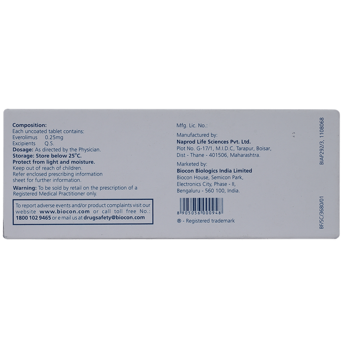 Everolimus (0.25mg):<packagingdetail>:Strip: