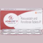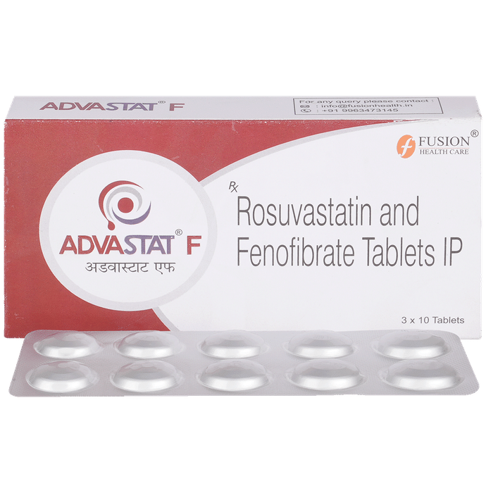 Can the use of Advastat F 160mg/10mg Tablet cause liver damage?::: Advastat F 160mg/10mg Tablet contains Rosuvastatin and Fenofibrate. A very rare (1 in 10000 patient) side effect of this medicine is liver damage. Use of this medicine should be avoided in patients with underlying liver disease. Contact your doctor immediately if you notice any early signs and symptoms of liver damage. These symptoms may include fever, rash, loss of appetite, nausea, vomiting, fatigue, stomach pain, dark urine, yellow skin or eyes, or abnormal liver enzymes.| Can the use of Advastat F 160mg/10mg Tablet cause muscle pain?::: Yes, Advastat F 160mg/10mg Tablet may cause muscle pain due to muscle injury. However, this side effect does not occur in everybody. Talk to your doctor as soon as possible if you are experiencing symptoms such as muscle pain or weakness.| What lifestyle changes should I adopt while taking Advastat F 160mg/10mg Tablet?::: Making lifestyle changes can boost your health while taking Advastat F 160mg/10mg Tablet. Stop smoking, as smoking lowers your risk of having a heart attack and stroke. If you are overweight or obese, try to lose weight. You should maintain a healthy diet by including fruits and vegetables in your meals. Regular exercise can make your heart strong and decrease your risk of heart attack.| What medicines should I avoid while taking Advastat F 160mg/10mg Tablet?::: Advastat F 160mg/10mg Tablet can interact with several medicines and can cause serious problems. Talk to your doctor and inform him about using Advastat F 160mg/10mg Tablet before taking any prescription or non-prescription medicine.| What are the instructions for the storage and disposal of Advastat F 160mg/10mg Tablet?::: Keep this medicine in the packet or the container it came in, tightly closed. Store it according to the instructions mentioned on the pack or label. Dispose of the unused medicine. Make sure it is not consumed by pets, children and other people.: