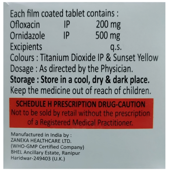 Ofloxacin (200mg) + Ornidazole (500mg):<packagingdetail>:Strip: