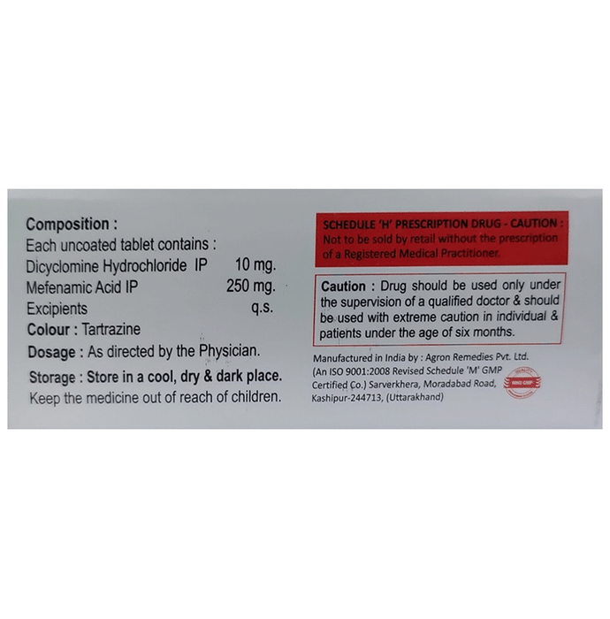 Dicyclomine (10mg) + Mefenamic Acid (250mg):<packagingdetail>:Strip: