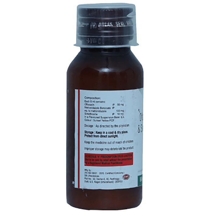 Ofloxacin (50mg/5ml) + Metronidazole (120mg/5ml) + Simethicone (10mg/5ml):<packagingdetail>:Bottle: