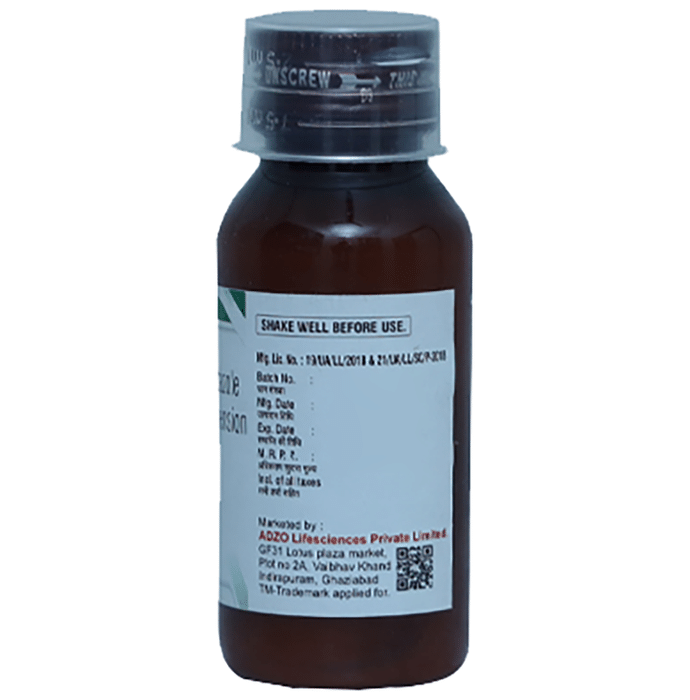What should I tell the doctor before giving Adzflox Oral Suspension to my child?::: You must tell the doctor if your child is suffering from heart disease, seizures, psychiatric disorders, diabetes, photoallergy (allergy from sunlight), neuromuscular disorders, rheumatoid arthritis, or genetic disorders involving blood vessels. This is because there is a possibility that Adzflox Oral Suspension may aggravate these conditions and result in complications.| Can Adzflox Oral Suspension be given along with cough and cold medicines?::: No, do not give Adzflox Oral Suspension with cough and cold medicines. The reason being, one of the ingredients present in Adzflox Oral Suspension can interact with alcohol-containing medicines like cough syrups and can lead to disulfiram reaction, causing nausea, vomiting, flushing, dizziness, etc.| What if I give an overdose of Adzflox Oral Suspension by mistake?::: An extra dose of Adzflox Oral Suspension is unlikely to harm. However, if you think you have given too much to your child, immediately speak to a doctor. Overdose may cause unwanted side effects such as seizures, tremors, severe headache, sudden weakness, blood cell abnormalities, and rapid and irregular heartbeat. Rush to your child’s doctor if you notice any of these symptoms.| What should I do if my child shows no improvement even after taking Adzflox Oral Suspension for the prescribed duration?::: It could mean that Adzflox Oral Suspension is unable to kill the infection-causing bacteria. In such a case, visit your child’s doctor who may prescribe some other antibiotic that has a higher efficacy against the disease-causing bacteria. Remember, that sometimes, such antibiotics may have to be given by IV route (intravenous injection) in the hospital.| Can other medicines be given at the same time as Adzflox Oral Suspension?::: Adzflox Oral Suspension can sometimes interact with other medicines or substances. Tell your doctor about any other medicines your child is taking before starting Adzflox Oral Suspension. Also, check with your child’s doctor before giving any medicine to your child.| How should Adzflox Oral Suspension be stored?::: Store Adzflox Oral Suspension at room temperature, in a dry place, away from direct heat and light. Children may accidentally consume medicines if they find them while playing around. So, make sure that all the medicines are kept away from their reach and sight.| Can I get my child vaccinated while on treatment with Adzflox Oral Suspension?::: Antibiotics usually do not interfere with the ingredients in vaccines or cause a bad reaction in a child who has just been vaccinated. However, children taking antibiotics should not get vaccinated until they recover from the illness. As soon as your child feels better, the vaccine can be given.| My child has been passing red-brown urine ever since he started taking Adzflox Oral Suspension? Is it normal?::: Adzflox Oral Suspension contains active ingredient metronidazole, which causes red-brown urine. It is not pathogenic but a side effect. It subsides once the medicine is stopped after the completion of the treatment.: