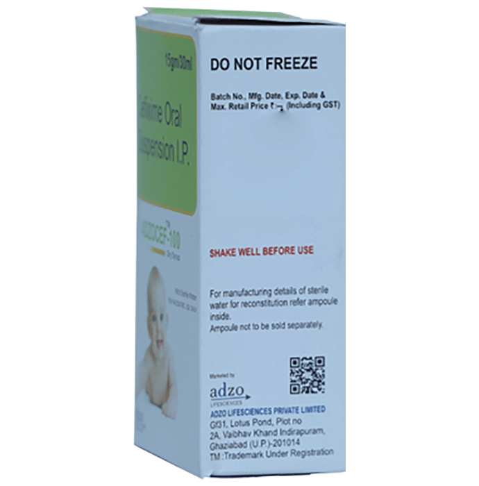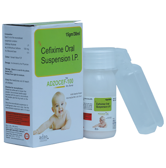 How long should I take Adzocef 100 Dry Syrup?::: Adzocef 100 Dry Syrup is usually prescribed for 7-14 days. You should take it for the full duration of your treatment as advised by your doctor.| What if I do not get better after using Adzocef 100 Dry Syrup?::: Inform your doctor if you do not feel better even after finishing the full course of treatment. You must also inform your doctor if the symptoms get worse while using this medicine.| Can the use of Adzocef 100 Dry Syrup cause diarrhea?::: Yes, the use of Adzocef 100 Dry Syrup can cause diarrhea. Adzocef 100 Dry Syrup is an antibiotic which kills the harmful bacteria, but it can also affect the helpful bacteria in your stomach or intestine and cause diarrhea. If diarrhea persists, talk to your doctor about it.| Is Adzocef 100 Dry Syrup effective?::: Adzocef 100 Dry Syrup is effective if used in the dose and duration advised by your doctor. Do not stop taking it even if you see improvement in your condition. If you stop using Adzocef 100 Dry Syrup too early, the symptoms may return or worsen.| What if I forget to take a dose of Adzocef 100 Dry Syrup?::: If you forget a dose of Adzocef 100 Dry Syrup, take it as soon as you remember. However, if it is almost time for your next dose, skip the missed dose and take the next scheduled dose. Do not double the dose to make up for the missed one as this may increase the chances of developing side effects.| Is Adzocef 100 Dry Syrup safe for the kidneys?::: Yes, Adzocef 100 Dry Syrup is safe for the kidneys when given alone, but when given along with aminoglycosides (gentamicin, tobramycin) or other cephalosporins antibiotics, it may increase kidney damage. Therefore, it is advised to take this medicine only if prescribed by your doctor.| How long should I take Adzocef 100 Dry Syrup?::: Adzocef 100 Dry Syrup is usually prescribed for 7-14 days. You should take it for the full duration of your treatment as advised by your doctor.: