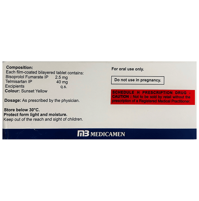 Bisoprolol (2.5mg) + Telmisartan (40mg):<packagingdetail>:Strip: