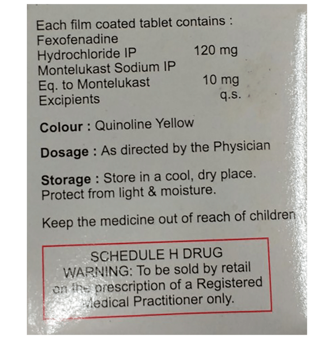 Montelukast (10mg) + Fexofenadine (120mg):<packagingdetail>:Strip: