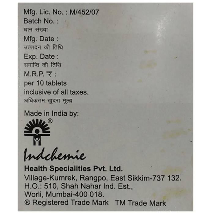 Prescription Required:Indchemie Health Specialities Pvt Ltd:<medicine_type>: