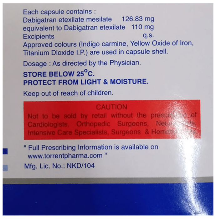 Dabigatran Etexilate (110mg):<packagingdetail>:Strip: