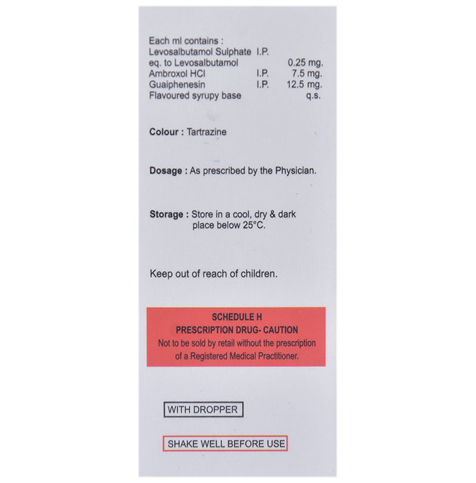 Levosalbutamol (0.25mg) + Ambroxol (7.5mg) + Guaifenesin (12.5mg):<packagingdetail>:Bottle: