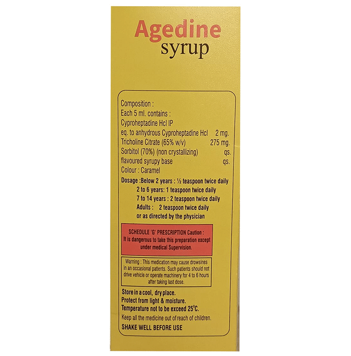 Can the use of Agedine Syrup cause dryness in mouth?::: Yes, the use of Agedine Syrup can cause dry mouth. If you experience dry mouth, drink plenty of water. Take regular sips during the day and keep some water by your bed at night. You may use lip balm if your lips are also dry.| Can the use of Agedine Syrup cause dizziness?::: Yes, the use of Agedine Syrup can cause dizziness (feeling faint, weak, unsteady or lightheaded) in some patients. If you feel dizzy or lightheaded it is better to rest for some time and resume once you feel better. Do not drive or use any machines.| What is the recommended storage condition for Agedine Syrup?::: Keep this medicine in the container or the pack it came in, tightly closed. Store it according to the instructions mentioned on the pack or label. Dispose of the unused medicine. Make sure it is not consumed by pets, children and other people.:
