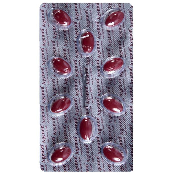 Agenon Softgel Capsule is a prescription medicine. It is a combination of vitamins that is prescribed to treat vitamin and other nutritional deficiencies. It ensures the proper growth and functioning of the body. Agenon Softgel Capsule can be taken with or without food. It should be used in the dose and duration as prescribed by your doctor. It is advised to take this medicine at a fixed time. This medicine should not be taken more than the recommended dose.Some common side effects may include nausea, vomiting, heartburn or loss of appetite. If these side effects or any other symptoms persist for a longer duration, please consult your doctor. Before taking this medicine, tell your doctor if you have any other health conditions.Inform your doctor if you are taking any other medicines or if you are pregnant or breastfeeding. It is not advised to drive after taking this medicine as it may cause sleepiness or dizziness and may affect your ability to concentrate and react. It is advised not to drink alcohol after taking this medicine.