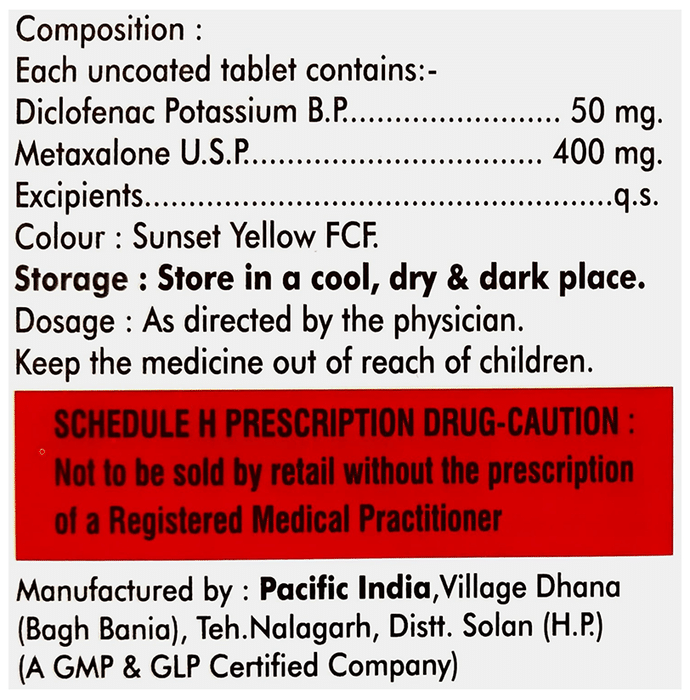 Diclofenac (50mg) + Metaxalone (400mg):<packagingdetail>:Strip: