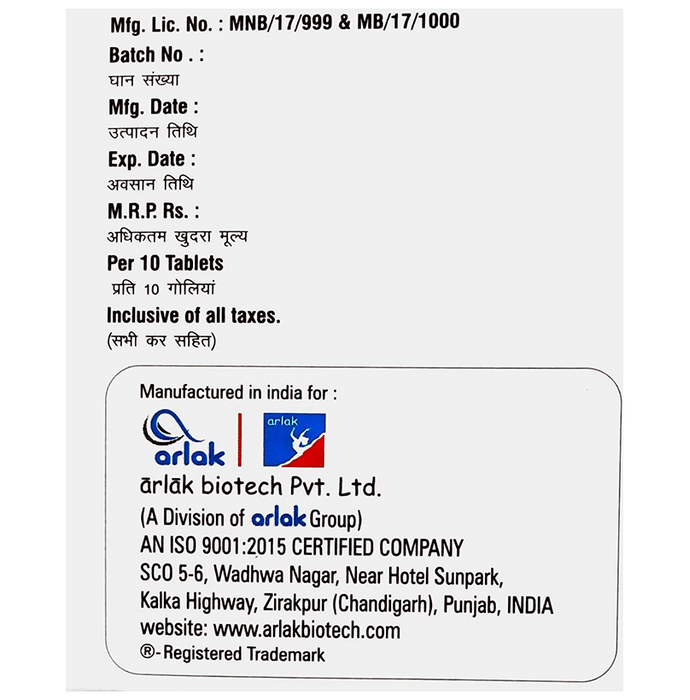 Prescription Required:Arlak Biotech Pvt Ltd:<medicine_type>:
