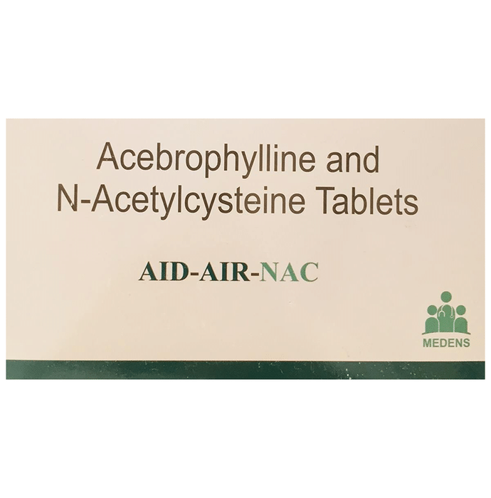 Aid-Air-NAC Tablet is used to treat and prevent asthma and symptoms of chronic obstructive pulmonary disorder (a lung disorder in which the flow of air to the lungs is blocked) such as coughing, wheezing, and shortness of breath. It helps relax the muscles of the air passages thereby making it easier to breathe. Aid-Air-NAC Tablet is taken with or without food in a dose and duration as advised by the doctor. The dose you are given will depend on your condition and how you respond to the medicine. You should keep taking this medicine for as long as your doctor recommends. If you stop treatment too early your symptoms may come back and your condition may worsen. Let your healthcare team know about all other medications you are taking as some may affect, or be affected by this medicine.The most common side effects are vomiting, heartburn, stomach upset, rash, itching, and nasal inflammation. Most of these are temporary and usually resolve with time. Contact your doctor straight away if you are at all concerned about any of these side effects. Avoid drinking alcohol while taking this medicine as that may cause excessive drowsiness.Never support self-medication or recommend your medicine to another person. Before you start taking this medicine it is important to inform your doctor if you are suffering from liver or kidney disease. You should also tell your doctor if you are pregnant, planning pregnancy, or breastfeeding.