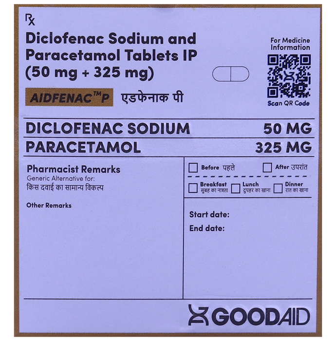 In Pain relief Aidfenac P Tablet is a combination of medicines that is used for short-term relief of pain, inflammation and swelling. It inhibits release of those chemical messengers in the brain that tell us that we have pain. It effectively relieves back pain, earache, throat pain, toothache and pain due to arthritis too.u003cbr>Take it as it is prescribed to get the most benefit. Do not take more or for longer than needed as that can be dangerous. In general, you should take the lowest dose that works, for the shortest possible time. This will help you to go about your daily activities more easily and have a better, more active, quality of life.