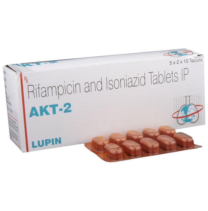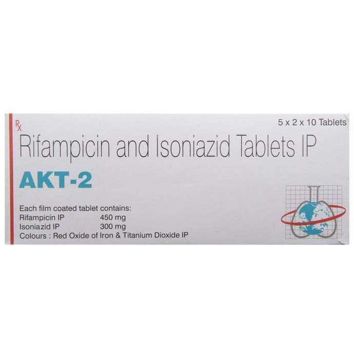 Akt 2 Tablet is a combination medicine used in the treatment of tuberculosis. It prevents the growth of the microorganisms that cause the infection. Akt 2 Tablet is a prescription medicine and it is to be taken as suggested by the doctor. It should be taken in an empty stomach and take it at a fixed time to ensure better efficacy. Do not consume more than the recommended dose, as this may have harmful effects on your body. If you miss a dose, take it as soon as you remember. The course of the treatment must be completed even if you feel better. Sudden discontinuation of the treatment may affect the potency of the medicine. The medicine may take some to show its effects on the symptoms. However, it is advised to consult the doctor if you feel an aggravation of the condition or if your condition does not improve.Some common side effects of this medicine are nausea, vomiting, fever, dark-colored urine, sweating, increased saliva, etc. To cope up with the side effects, you should drink plenty of water. If any of the side effects get aggravated, you must consult your doctor immediately. Generally, serious side effects are rare. If you experience any allergic reaction (rashes, itching, swelling, shortness of breath, etc.), you must seek immediate medical help.Before taking this medicine, you should tell your doctor if you are taking any medicines for any health condition. Patients with liver and kidney ailments must take this medicine with proper consultation and caution. Pregnant or breastfeeding women should also consult with the doctor before taking it. Avoid drinking alcohol as it can cause excessive drowsiness with this medicine. It usually does not impair your ability to drive, but you should not drive if it makes you feel sleepy or dizzy. During the treatment, you must take adequate rest and eat a healthy diet for a faster recovery. While on the medication, your doctor may ask for a few laboratory and diagnostic tests to know the effects of the medicine on your body.: