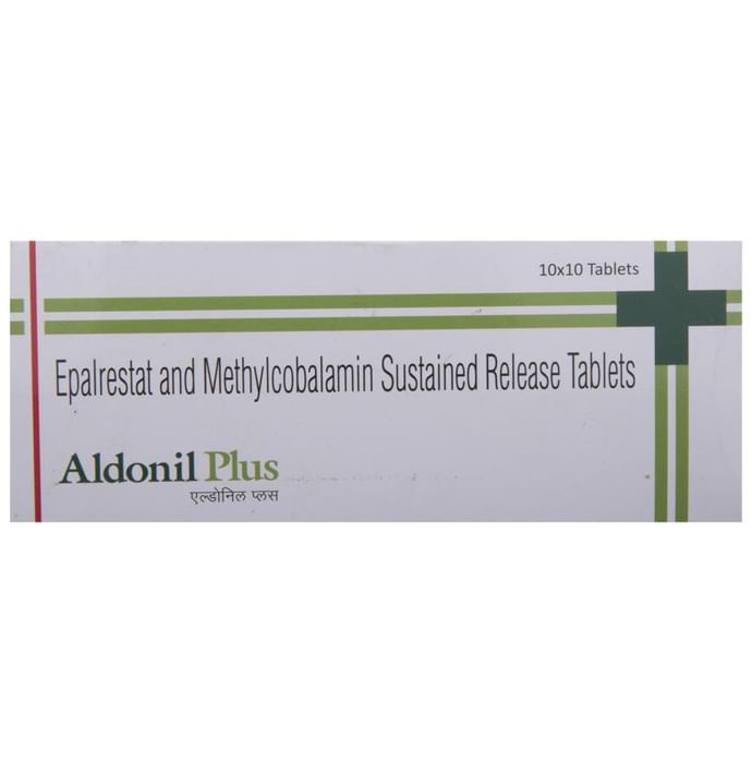 Aldonil Plus Tablet SR is a medicine used in the treatment of diabetic nerve disease. It protect the nerve fibers from damage and promotes regeneration of nerve cells. It is used along with other blood sugar lowering medications in order to prevent further nerve injury. Aldonil Plus Tablet SR may be taken with or without food, but you should try to take it at the same time every day. The dose will be decided by your doctor. Do not stop taking it without asking your doctor. If you do, your blood sugar levels may increase and put you at risk of serious complications like kidney damage and blindness. This medicine is only part of a treatment program that should include a healthy diet, regular exercise, and weight reduction as advised by your doctor.The most common side effects of this medicine include nausea, vomiting, and increased liver enzymes. However, these are temporary and usually subside on their own. Please consult your doctor if these do not resolve or persist for a longer duration.Before taking this medicine, inform your doctor if you have any kidney or liver problems or a urinary tract infection or if you are on water pills (diuretics). Pregnant or breastfeeding women should also consult their doctor before taking it. Avoid excessive alcohol intake while taking it as this may increase the risk of developing some side effects. Monitor your blood sugar levels regularly while taking this medicine.: