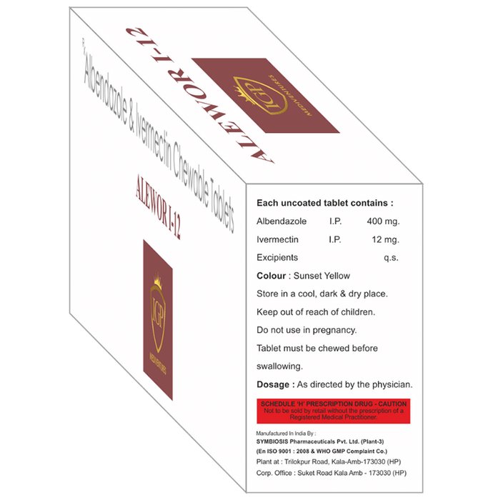 Alewor-I 12 Tablet is a combination medicine that is used in the treatment of parasites and worm infestations in the body. It fights against the worms to treat the infection.Alewor-I 12 Tablet is a prescription medicine. It is advised to take it as per the prescription. It can be taken with or without food, but it must be taken at a fixed time to ensure better efficacy. Do not consume more than the recommended dose, as this may have harmful effects on your body. If you miss a dose, take it as soon as you remember. The course of the treatment must be completed even if you feel better. Sudden discontinuation of the treatment may affect the potency of the medicine.Some common side effects of this medicine are nausea, vomiting, diarrhea, flatulence, etc. If any of the side effects get aggravated, you must consult your doctor immediately. If you experience any allergic reaction (rashes, itching, swelling, shortness of breath, etc.), you must seek immediate medical help.Before taking this medicine, you should tell your doctor if you are taking any medicines for any health condition. Pregnant or breastfeeding women should also consult with their doctor before taking it. Avoid drinking alcohol as it can cause excessive drowsiness with this medicine. It usually does not impair your ability to drive, but you should not drive if it makes you feel sleepy or dizzy. You must take adequate rest for a faster recovery, also take a healthy diet and drink plenty of water. Your doctor may ask for a few laboratory and diagnostic tests to know the effects of the medicine on your body.: