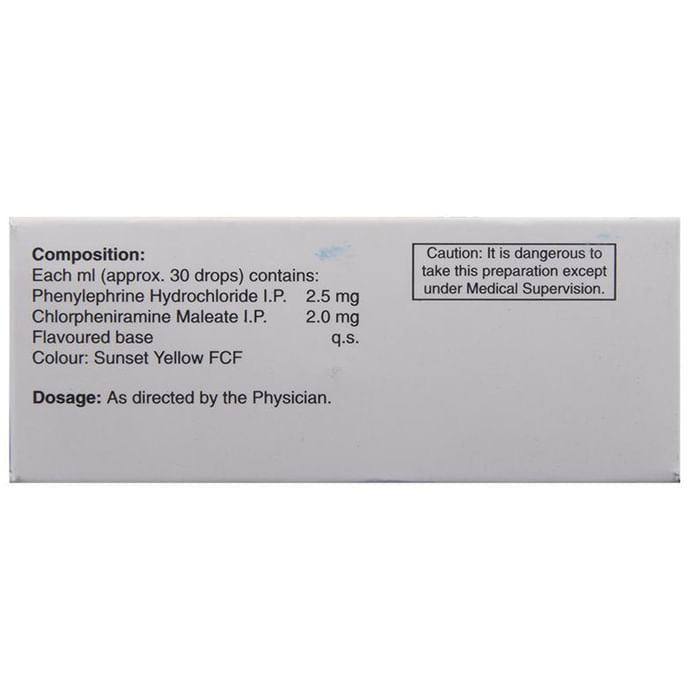 Chlorpheniramine Maleate is an antiallergic which relieves allergy symptoms like runny nose, watery eyes and sneezing. Phenylephrine is a decongestant which narrows the small blood vessels providing relief from congestion or stuffiness in the nose.: