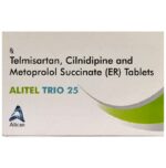 Alitel Trio 25 Tablet ER is a combination of medicines used to treat hypertension (high blood pressure) when a single medication is not effective. It helps to lower high blood pressure thus reduces chances of future heart attack and stroke. You can take Alitel Trio 25 Tablet ER at any time of day, with food, but it is best to take it at the same time each day. Keep taking it for as long as advised by your doctor. Even if you feel well, do not stop this medicine on your own because high blood pressure often has no symptoms. If you stop taking it, your condition may get worse. Keeping active with regular exercise, reducing your weight and eating a healthy diet will also help control your blood pressure. Follow your doctor’s advice while taking this medicine.It may cause side effects like nausea, taste change, throat infection, back pain, and ankle swelling. To lower down ankle swelling, raise your legs while sitting. It is also advised to avoid the intake of potassium rich diet or supplements while on treatment. You may be asked for regular monitoring of blood pressure, kidney function, blood sugar level, and electrolytes level while on the treatment.Before taking it, let your doctor know if you have any liver or kidney problems. Pregnant or breastfeeding women should also consult their doctor for advice before taking this medicine. You also need to tell your doctor what other medicines you are taking especially those used to treat high blood pressure or heart conditions.: