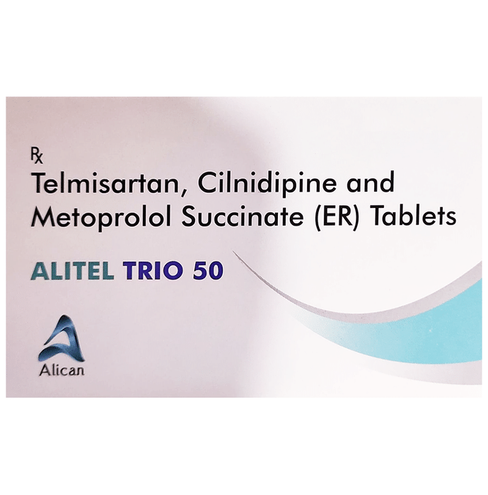 Alitel Trio 50 Tablet ER is a combination of medicines used to treat hypertension (high blood pressure) when a single medication is not effective. It helps to lower high blood pressure thus reduces chances of future heart attack and stroke. You can take Alitel Trio 50 Tablet ER at any time of day, with food, but it is best to take it at the same time each day. Keep taking it for as long as advised by your doctor. Even if you feel well, do not stop this medicine on your own because high blood pressure often has no symptoms. If you stop taking it, your condition may get worse. Keeping active with regular exercise, reducing your weight and eating a healthy diet will also help control your blood pressure. Follow your doctor’s advice while taking this medicine.It may cause side effects like nausea, taste change, throat infection, back pain, and ankle swelling. To lower down ankle swelling, raise your legs while sitting. It is also advised to avoid the intake of potassium rich diet or supplements while on treatment. You may be asked for regular monitoring of blood pressure, kidney function, blood sugar level, and electrolytes level while on the treatment.Before taking it, let your doctor know if you have any liver or kidney problems. Pregnant or breastfeeding women should also consult their doctor for advice before taking this medicine. You also need to tell your doctor what other medicines you are taking especially those used to treat high blood pressure or heart conditions.: