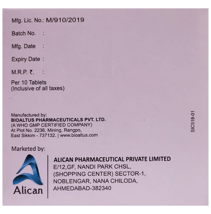 Alican Pharmaceutical Pvt Ltd:,drugs:,Tablet ER:,