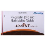 What is Alnex NT 75mg/10mg Tablet?::: Alnex NT 75mg/10mg Tablet is a combination of two medicines: Pregabalin and Nortriptyline. This medicine is useful in the treatment of nerve pain (neuropathic pain). It calms the damaged or overactive nerves by acting on the brain. Thereby, decreasing the pain sensation.| Can I stop taking Alnex NT 75mg/10mg Tablet when my pain is relieved?::: No, you should not stop taking Alnex NT 75mg/10mg Tablet even if your pain is relieved. Continue to take it as advised by your doctor. If you suddenly stop taking Alnex NT 75mg/10mg Tablet, you may experience withdrawal symptoms such as anxiety, sleeping difficulties, nausea, pain and sweating. You may need to gradually taper the dose before you stop the medication completely.| How to manage weight gain associated with the use of Alnex NT 75mg/10mg Tablet?::: Alnex NT 75mg/10mg Tablet can make you feel hungry which might make you eat more, thereby increasing your chances of putting on weight.. However, preventing weight gain is easier than losing increased weight. Try to eat a healthy balanced diet without increasing your portion sizes (per-meal intake). DO not eat foods that contain a lot of calories, such as soft drinks, oily food, chips, cakes, biscuits, and sweets. If you feel hungry between meals, avoid eating junk food and eat fruits, vegetables and low-calorie foods. Regular exercise will prevent weight gain. If you maintain good eating habits and exercise regularly, you might not gain any weight.| Can the use of Alnex NT 75mg/10mg Tablet cause sleepiness or drowsiness?::: Yes, Alnex NT 75mg/10mg Tablet may make you feel drowsy or you may suddenly fall asleep during your daily activities. Sometimes, you might not even feel drowsy or have any other warning signs before you suddenly fall asleep. Avoid driving a car, operating machinery, working at heights or participating in potentially dangerous activities at the beginning of your treatment until you know how the medicine affects you. Inform your doctor if you experience such episodes while taking this medicine.| Can the use of Alnex NT 75mg/10mg Tablet affect my sexual life?::: The use of Alnex NT 75mg/10mg Tablet can affect the sexual life of both men and women. Most commonly caused problems are decreased sexual desire, erectile dysfunction (inability to develop or maintain erection during the sexual activity) and inability to reach orgasm. It can also cause a decrease in satisfaction and cause discomfort while intercourse. If you experience these problems, discuss them with your doctor but do not stop taking Alnex NT 75mg/10mg Tablet.| Are there any serious side effects associated with the use of Alnex NT 75mg/10mg Tablet?::: Serious side effects because of Alnex NT 75mg/10mg Tablet are uncommon and rare. Consult your doctor if you notice any of the following: changes in body temperature, difficulty in breathing, increased heartbeat (palpitations), weakness, unsteadiness when walking, reduced coordination or slowed reactions, unusual changes in mood or behavior (such as restlessness, nervousness or excitement), signs of depression, seeing or hearing things that are not there, irrational thinking, blurred or double vision, uncontrollable jerky eye movements, difficulty seeing, signs of frequent infections such as fever, severe chills, sore throat or mouth ulcers. These side effects are uncommon but may be serious and need urgent medical attention.| How long will the Alnex NT 75mg/10mg Tablet take to act?::: An initial benefit with Alnex NT 75mg/10mg Tablet may be seen after 2 weeks of treatment. However, it may take around 2-3 months to see full benefit. It may even take longer in some patients.| What if I forget to take Alnex NT 75mg/10mg Tablet?::: If you forget to take the scheduled dose of Alnex NT 75mg/10mg Tablet and it is almost time for your next dose, skip the dose you missed and take your next dose at the scheduled time. Otherwise, take it as soon as you remember, and then go back to taking your medicine as you would normally. Do not take a double dose to make up for the dose you missed because this may increase the risk of unwanted side effects due to overdosage. If you are not sure what to do, consult your doctor about how to manage a situation like this.| What if I take too much of this drug by mistake?::: In a situation like this, contact your doctor immediately or seek emergency help at the nearest hospital. Do this even if there are no signs of discomfort or poisoning. You may need urgent medical attention. Symptoms of an overdose may include drowsiness, weakness, unsteadiness while walking, having double visions, slurred speech or diarrhea, confusion, blurred vision, dizziness, body temperature changes (low and high), difficulty in breathing and increased heartbeat.| Will Alnex NT 75mg/10mg Tablet be more effective if a higher than the recommended dosage is taken?::: No, taking a higher than the recommended dose may not be more effective, rather it may increase the chances of having some serious side effects and toxicity. If you experience increased severity of your symptoms that are not relieved by the recommended doses, please consult your doctor for re-evaluation.| Is there anything I need to avoid while taking Alnex NT 75mg/10mg Tablet?::: Alnex NT 75mg/10mg Tablet may impair your thinking or reactions. Be careful while driving or doing an activity that requires you to be alert. Do not drink alcohol while you are taking Alnex NT 75mg/10mg Tablet. It can increase the effects of alcohol, which could be dangerous. Grapefruit and grapefruit juice may also interact with this medicine and cause unwanted side effects. Avoid exposure to sunlight or tanning beds. Use of Alnex NT 75mg/10mg Tablet can make you more prone to sunburns. Wear protective clothing and use sunscreen when you are outdoors during daytime.| How often should I see the doctor ?::: You may need to see your doctor regularly if you have started to take Alnex NT 75mg/10mg Tab