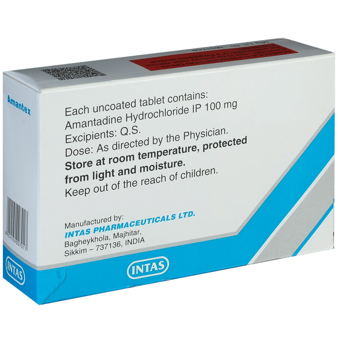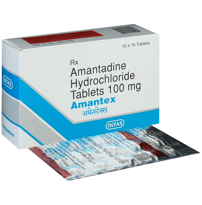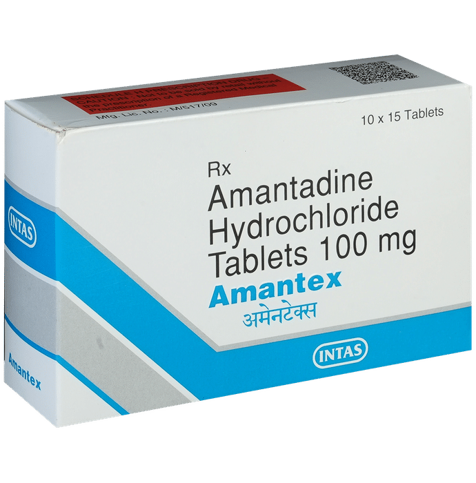 Amantex Tablet is used alone or in combination with other medicines to treat Parkinson’s disease. It can also be used to treat drug-induced movement disorder. It works by increasing the levels of a chemical called dopamine in the brain, which is important for controlling movement. Amantex Tablet is also used to prevents and treats influenza infection. The antiviral poperty of the medicine works against the viruses to prevent their and multiplication. Amantex Tablet may be taken with or without food. Take it at the same time each day as this helps to maintain a consistent level of medicine in the body. Take this medicine in the dose and duration as advised by your doctor.If you have missed a dose, take it as soon as you remember it. You should finish the full course of treatment even if you feel better. It is important that this medication is not stopped suddenly without talking to your doctor. This medicine may put you at a higher risk of having seizures, so it is better to talk to your doctor if you have any history of seizures or taking medication for it.Some common side effects of Amantex Tablet include nausea, dryness in the mouth, constipation, blurred vision, insomnia (difficulty sleeping), hallucinations, peripheral edema and balance disorder (loss of balance). It may initially cause dizziness and lowering of blood pressure while standing, so rise slowly and do not drive or do anything that requires mental focus until you know how this medicine affects you.: