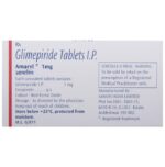 Amaryl 1mg Tablet belongs to a group of medicines called sulfonylureas and is used to treat type 2 diabetes mellitus in adults. It helps control blood sugar levels in people with diabetes thereby preventing serious complications of diabetes such as kidney damage and blindness. Amaryl 1mg Tablet may be used alone or along with other medicines. It should be taken just before or with the first meal of the day. Take it regularly at the same time each day to get the maximum benefit. Your doctor will decide what dose is best for you and this may change from time to time according to your blood sugar levels.Keep taking Amaryl 1mg Tablet, even if you feel well or your blood sugar levels are controlled. If you stop it without consulting your doctor, your blood sugar levels could rise to put you at risk of diabetes complications such as kidney damage, blindness, nerve problems, and loss of limbs. Remember that it is only part of a treatment program that should also include a healthy diet, regular exercise, and weight reduction as advised by your doctor. Your lifestyle plays a big part in controlling diabetes.The most common side effects of taking Amaryl 1mg Tablet include low blood sugar levels (hypoglycemia), nausea, headache, weakness, and dizziness. Make sure you recognize the signs of having low blood sugar levels, such as sweating, dizziness, headache, and shaking, and know how to deal with them. To prevent this, it is important to have regular meals and always carry a fast-acting source of glucose such as sugary food or fruit juice with you. Drinking alcohol can also increase your risk of low blood sugar levels and hence should be avoided. Some people may experience an increase in weight with this medicine.You should not take Amaryl 1mg Tablet if you have type 1 diabetes mellitus, diabetic ketoacidosis (high levels of acid in your blood), or if you have severe kidney or liver disease. Before taking this medicine, tell your doctor if you have ever had heart disease, thyroid disease, or some hormonal conditions, as it may not be suitable. Pregnant or breastfeeding women should also consult their doctor before taking it. Your blood sugar levels should be checked regularly and your doctor may also advise blood tests to monitor your blood cell counts and liver function.: