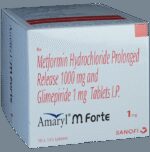 Amaryl M Forte 1mg Tablet PR is a combination of two antidiabetic medicines: Glimepiride and Metformin.Glimepiride is a sulfonylurea which works by increasing the amount of insulin released by the pancreas in order to lower the blood glucose. Metformin is a biguanide which works by lowering glucose production in the liver, delaying glucose absorption from intestines and increasing the body’s sensitivity to insulin.: