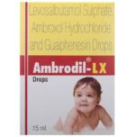 Ambrodil-LX Drop is a combination of three medicines: Ambroxol, Levosalbutamol, and Guaifenesin, which relieves cough with mucus. Ambroxol is a mucolytic that thins and loosens mucus (phlegm), making it easier to cough out. Levosalbutamol is a bronchodilator. It works by relaxing the muscles in the airways and widens the airways. Guaifenesin is an expectorant that decreases the stickiness of mucus (phlegm) and helps in its removal from the airways. Together, they make breathing easier.: