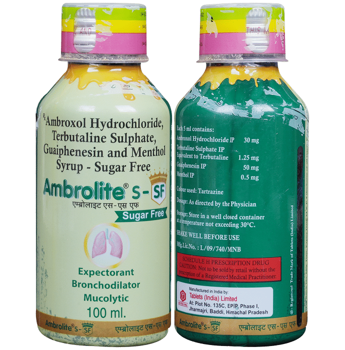 Ambrolite S-SF Syrup Sugar Free is a combination of four medicines: Ambroxol, Guaifenesin, Menthol and Terbutaline.: