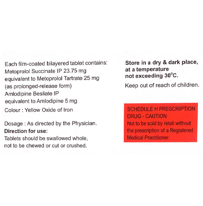 Can I stop taking Amlong MT 5/25 Tablet PR if I feel well?::: No, keep using Amlong MT 5/25 Tablet PR as advised by your doctor, even if you feel well. Stopping Amlong MT 5/25 Tablet PR suddenly may lead to serious complications such as heart attack and stroke.| What are the instructions for the storage and disposal of Amlong MT 5/25 Tablet PR?::: Keep this medicine in the packet or the container it came in, tightly closed. Store it according to the instructions mentioned on the pack or label. Dispose of the unused medicine. Make sure it is not consumed by pets, children and other people.| Can the use of Amlong MT 5/25 Tablet PR cause headache?::: Yes, the use of Amlong MT 5/25 Tablet PR can cause headaches at the beginning of the treatment. Headaches usually go away after the first week of the treatment. Contact your doctor if the headaches are frequent and do not go away.| What are the contraindications associated with the use of Amlong MT 5/25 Tablet PR?::: Amlong MT 5/25 Tablet PR Succinate is considered to be harmful for patients who are allergic to any of its active or inactive ingredient. It should be avoided in patients with a history of asthma or lung disease. Inform your doctor about the your medical history and medicines to avoid any side effects.| Can I feel dizzy after taking Amlong MT 5/25 Tablet PR?::: Yes, the use of Amlong MT 5/25 Tablet PR can make you feel dizzy. This may occur when you suddenly rise up from lying or sitting position. To lower the chance of feeling dizzy or passing out, rise slowly if you have been sitting or lying down.: