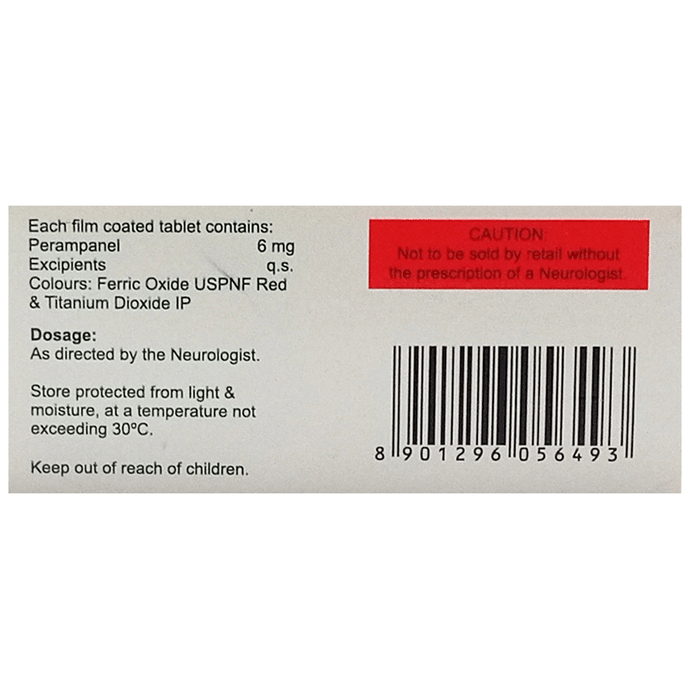 Ampanel 6 Tablet is an antiepileptic medication. It prevents seizures in patients with epilepsy by blocking a receptor in the brain known as the glutamate receptor, thereby suppressing the abnormal and excessive activity of the nerve cells in the brain.: