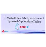 ANC 9 Tablet is a combination of three nutritional supplements. L-Methyl Folate is a form of folate that replenishes the folic acid deficiency, this in turn helps in the formation of new red blood cells to treat or prevent anemia. Methylcobalamin and Pyridoxal-5-phosphate are vitamins. They restore any vitamin deficiencies in the body. This helps in maintaining proper hormonal balance in the body to ensure appropriate growth and functioning of the organs.: